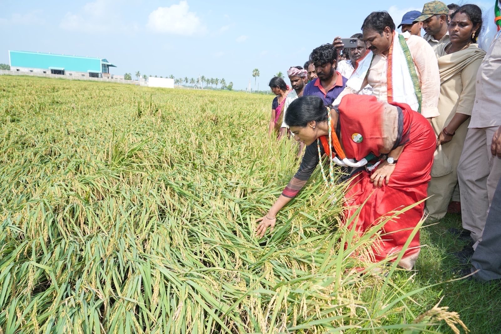 AP Govt : అమరావతి : మొంథా తుపాను ప్రభావం కారణంగా చేతికొచ్చిన పంటలను రైతులు కోల్పోయారని ఆవేదన వ్యక్తం చేశారు ఏపీపీసీసీ అధ్యక్షురాలు వైఎస్ షర్మిలా రెడ్డి (YS Sharmila). మహా విపత్తును సృష్టించిందని వాపోయారు. కోల్పోయిన పంటలను స్వయంగా పరిశీలించారు. ఈ సందర్బంగా రైతులతో మాట్లాడారు. ఆరుగాలం కష్టించి పండించిన పంటలన్నీ నేలపాలు అయ్యాయని పేర్కొన్నారు. ఏ రైతుని కదిలించినా కన్నీటి పర్యంతమేనని ఆవేదన చెందారు. కృష్ణా జిల్లా బంటుమిల్లి మండల కేంద్రంలో పర్యటించారు. జరిగిన పంట నష్టాన్ని పరిశీలించారు. రైతన్నలతో జరిగిన నష్టంపై చర్చించారు వైఎస్ షర్మిలా రెడ్డి. మొంథా ప్రభావంతో ఒక్క బంటుమిల్లి మండలంలోనే సుమారు 5 వేల ఎకరాల్లో వరి పంట నీటమునిగి నేలకొరిగిందన్నారు. రైతన్న ప్రతి ఎకరాకు దాదాపు 35 వేల వరకు పెట్టుబడి పెడితే, పంట చేతికొచ్చి సమయంలో తుఫాను సర్వ నాశనం చేసిందన్నారు.