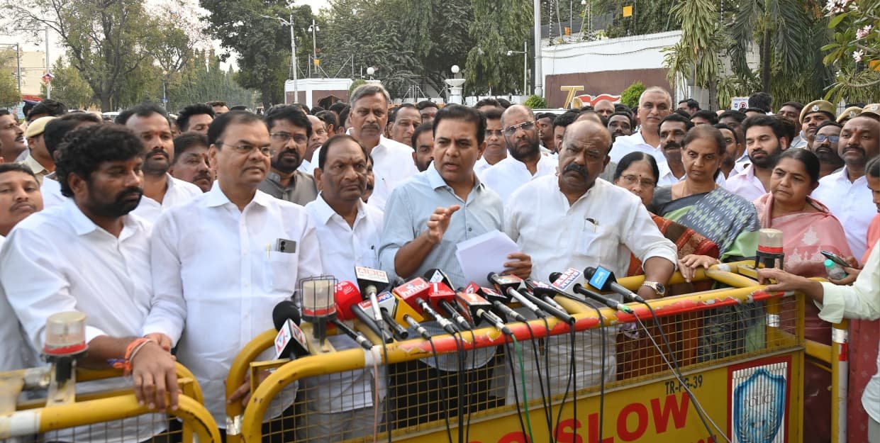 గవర్నర్ ను కలిసిన అనంతరం కేటీఆర్ మీడియాతో మాట్లాడారు. తమ పార్టీ తరఫున శాసనమండలి సభ్యులు, పార్లమెంట్ సభ్యులు, శాసనసభ్యులు, మా సీనియర్ నాయకుల బృందం అందరం కూడా కలిసి గవర్నర్ కు ఒక వివరమైన విజ్ఞాపన పత్రాన్ని ఇచ్చాం అని తెలిపారు. రాష్ట్రంలో జరుగుతున్న అవినీతి, ముఖ్యంగా సింగరేణిలో జరుగుతున్న దోపిడీ విషయానికి పూర్తిగా ఆధారాలతో సహా వివరించడం జరిగిందన్నారు. ఆధారాలతో సహా మా శాసన సభాపక్ష ఉప నాయకులు, మాజీ మంత్రి హరీష్ రావు పత్రికా సమావేశం పెట్టి, ఆధారాలతో సహా బయట పెట్టినప్పటి నుంచి కాంగ్రెస్ పార్టీలో వణుకు మొదలైందన్నారు.