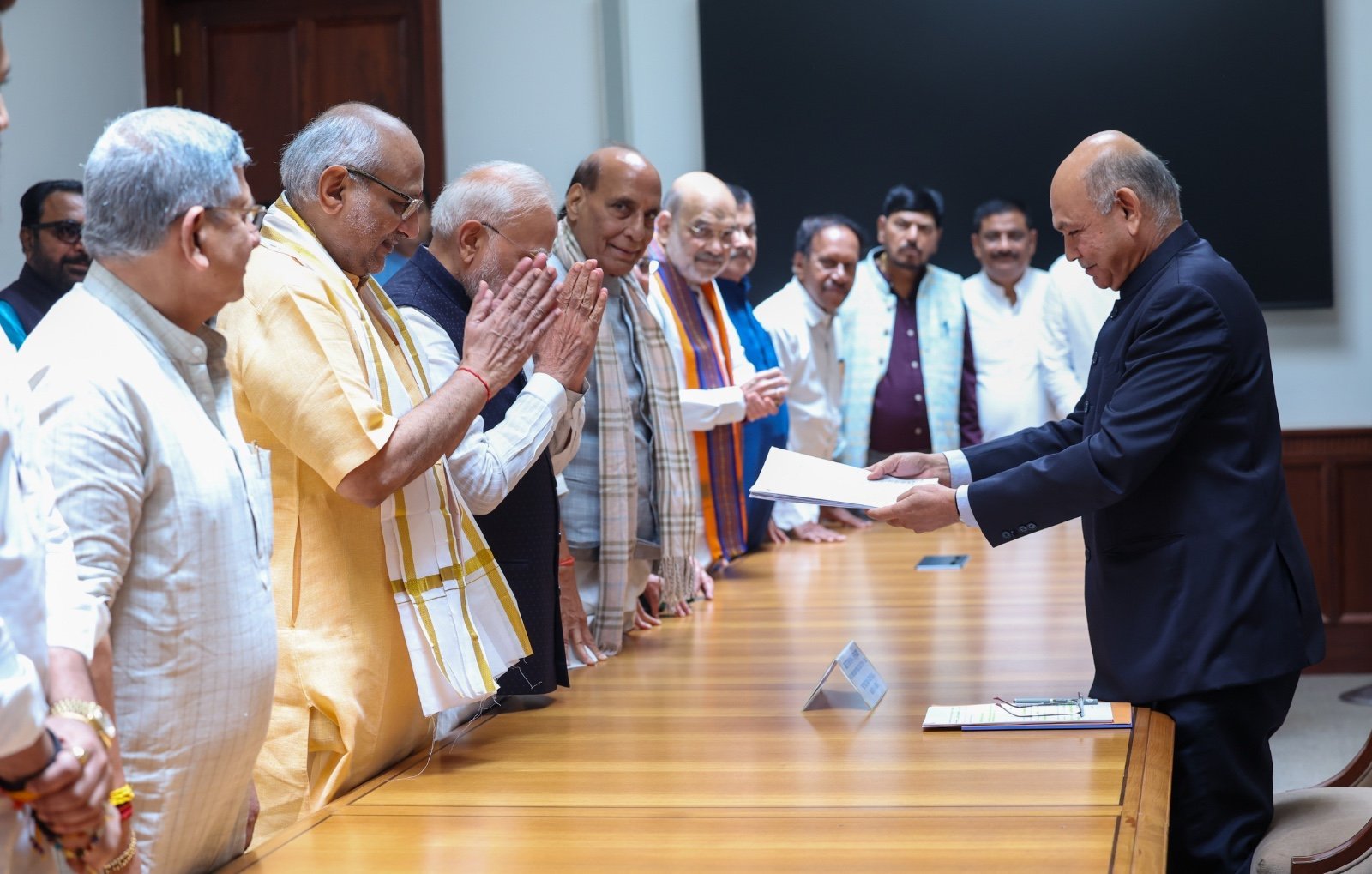 నరేంద్ర మోదీ తతో పాటు మంత్రులు ప్రహ్లాద్ జోషి, ధర్మేంద్ర ప్రధాన్ , కె రామ్ మోహన్ నాయుడు, శివసేన నాయకుడు శ్రీకాంత్ షిండే, ఎల్జెఎస్పి (ఆర్వి) నాయకుడు చిరాగ్ పాస్వాన్ సహా ఇతర ఎన్డిఎ నాయకులు రాధాకృష్ణన్ను పార్లమెంటులోని రిటర్నింగ్ అధికారి కార్యాలయానికి తీసుకెళ్లారు.