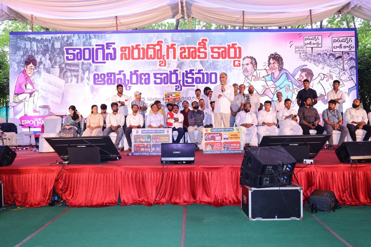 Harish Rao : హైద‌రాబాద్ : తాము ప‌వ‌ర్ లోకి వ‌స్తే 2 ల‌క్ష‌ల జాబ్స్ ఇస్తామ‌ని ప‌వ‌ర్ లోకి వ‌చ్చిన కాంగ్రెస్ పార్టీ నిరుద్యోగుల‌ను నిట్ట నిలువునా మోసం చేసిందంటూ కాంగ్రెస్ స‌ర్కార్ పై మండిప‌డ్డారు మాజీ మంత్రి హ‌రీశ్ రావు (Harish Rao). శుక్ర‌వారం నిరుద్యోగ బాకీ కార్డు ఆవిష్కరణ కార్యక్రమంలో పాల్గొన్నారు. ఇచ్చిన మాట నిలుపుకో అని బాకీ కార్డులు రేవంత్ రెడ్డిని ప్రశ్నిస్తున్నాయని అన్నారు. ఎన్నికల ముందు వేడుకున్నడు, వాడుకున్నడు. అధికారంలోకి వచ్చాక వదిలేశాడ‌ని ఎద్దేవా చేశారు. రాహుల్ గాంధీ, ప్రియాంక గాంధీలతో అశోక్‌నగర్, సరూర్‌నగర్ స్టేడియంలో మీటింగులు పెట్టించారని చివ‌ర‌కు ద‌గా చేశారంటూ ఆవేద‌న వ్య‌క్తం చేశారు. ఉద్యోగాలు, నిరుద్యోగ భృతి అని మాయ మాటలు చెప్పారని అన్నారు.