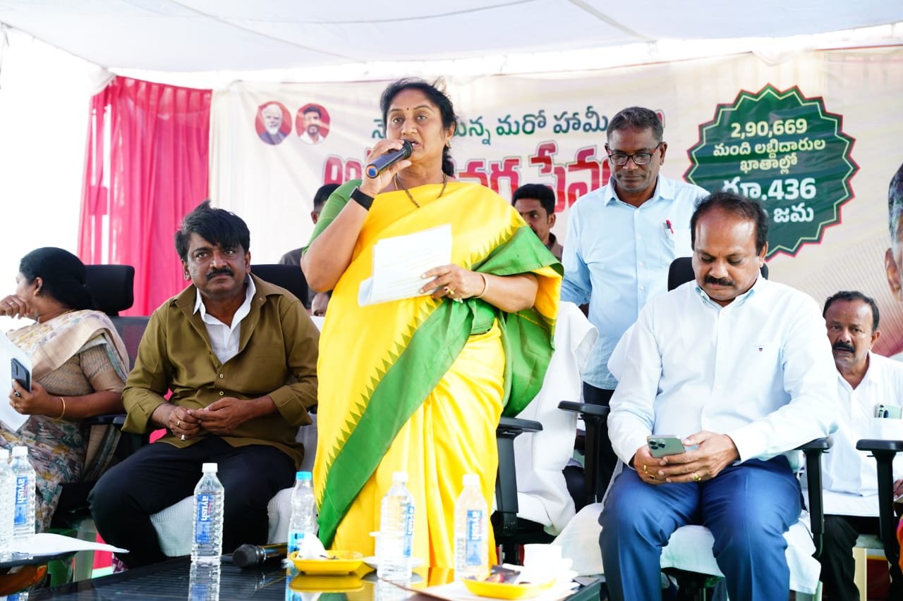 దీపం -2, తల్లికి వందనం, ఒకటో తారీఖునే పెన్షన్లు అందజేస్తున్నామని చెప్పారు ఎస్. సవిత. మహిళలకు ఉచిత బస్సు ప్రయాణ సౌకర్యం కల్పించామన్నారు. మెగా డీఎస్సీ నిర్వహించి 16 వేల టీచర్ పోస్టులు భర్తీ చేశామని తెలిపారు.. 15 నెలల్లో ప్రభుత్వ, ప్రైవేటు రంగాల్లో కలిపి 4,71,574 మందికి ఉద్యోగాలు కల్పించామని చెప్పారు. నూతన రేషన్ కార్డులు అందజేశామని, స్మార్ట్ రేషన్ కార్డులు కూడా పంపిణీ చేస్తున్నామని తెలిపారు. జీఎస్టీ సంస్కరణలతో పేదలకు ఎంతో మేలు కలుగుతోందన్నారు. అన్నదాత సుఖీభవ పథకంతో రైతులకు అండగా నిలిచామని పేర్కొన్నారు. త్వరలో పేదలకు ఇళ్లు పంపిణీ చేయనున్నామన్నారు. దమ్ముంటే జగన్ మోహన్ రెడ్డి, ఆయన పరివారం తమతో చర్చకు రావాలని సవాల్ విసిరారు.