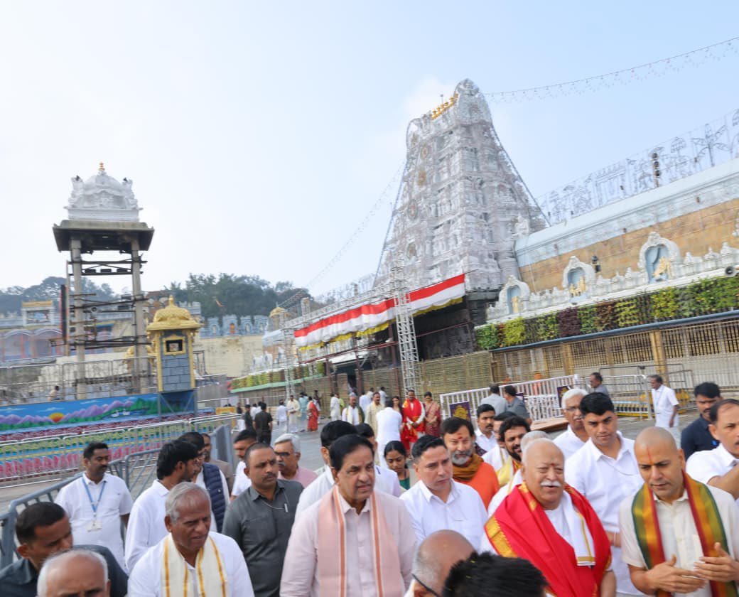 ఇదిలా ఉండ‌గా ఆర్ఎస్ఎస్ చీఫ్ మోహ‌న్ భ‌గ‌వ‌త్ , కేంద్ర మంత్రి జితేంద‌ర్ సింగ్ ల‌కు ప్రోటోకాల్ ప్ర‌కారం ఏర్పాట్లు చేశారు. పెద్ద ఎత్తున సెక్యూరిటీ ఏర్పాటు చేశారు తిరుమ‌ల పుణ్య‌క్షేత్రంలో. మూలమూర్తి దర్శనం అనంతరం రంగనాయక మండపంలో వేద పండితులు వేదాశీర్వచనం చేశారు. అనంతరం శేష వస్త్రం కప్పి, స్వామివారి తీర్థ ప్రసాదాలు, చిత్రపటం, 2026 క్యాలెండర్, డైరీను అందజేశారు. ఈ సంద‌ర్బంగా ఆర్ఎస్ఎస్ బాస్ మోహ‌న్ భ‌గ‌వత్ మీడియాతో మాట్లాడారు. క‌లియుగ దైవంగా గుర్తింపు పొందిన శ్రీ వేంక‌టేశ్వ‌ర స్వామిని ద‌ర్శించు కోవ‌డం సంతోషంగా ఉంద‌న్నారు. భార‌త దేశం స‌క‌ల సంప‌దల‌తో త‌ల తూగాల‌ని, ప్ర‌జ‌లంతా సుఖ సంతోషాల‌తో ఉండాల‌ని ప్రార్థించిన‌ట్లు చెప్పారు.
