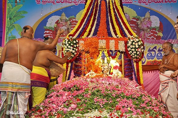 Tirupati : తిరుపతి – తిరుపతి లోని అప్పలాయగుంట శ్రీ ప్రసన్న వేంకటేశ్వర స్వామివారి (Sri Prasanna Venkateswara) ఆలయంలో పుష్పయాగం వైభవంగా జరిగింది. ఈ ఆలయంలో జూన్ 07 నుండి 15వ తేదీ వరకు వార్షిక బ్రహ్మోత్సవాలు జరిగిన విషయం విదితమే. నిత్య కైంకర్యాల్లో గానీ, బ్రహ్మోత్సవాల్లో గానీ, అర్చక పరిచారకుల వల్ల, అధికారుల వల్ల, భక్తుల వల్ల ఏవైనా లోపాలు జరిగి ఉంటే వాటిని నివత్తి చేసుకునేందుకు పుష్పయాగం నిర్వహించడం ఆనవాయితీగా వస్తోంది.