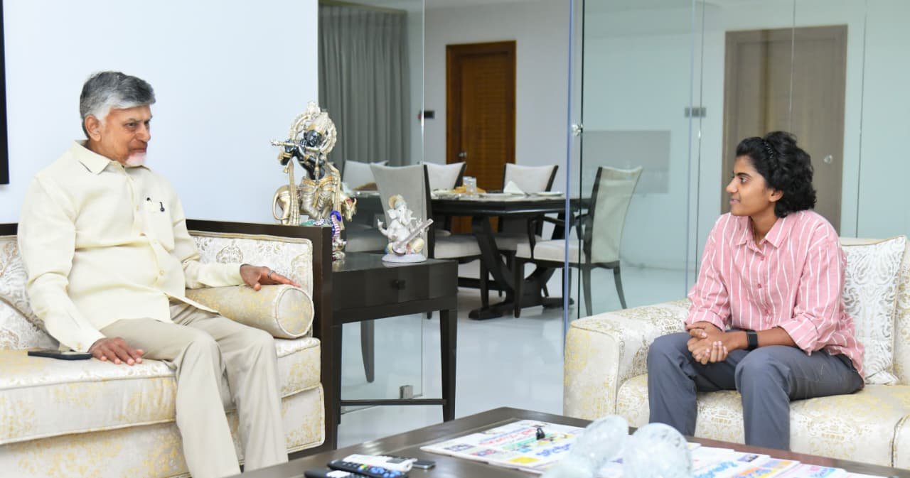 Sri Charani : అమ‌రావ‌తి : ఏపీ సీఎం నారా చంద్రబాబు నాయుడుతో ఐసీసీ మ‌హిళ‌ల వ‌న్డే వ‌ర‌ల్డ్ క‌ప్ విజేతగా నిలిచిన భార‌త మ‌హిళా క్రికెట్ జ‌ట్టులో స‌భ్యురాలైన ఏపీలోని చిత్తూరు జిల్లాకు చెందిన క్రికెట‌ర్ శ్రీ‌చ‌ర‌ణి (Sri Charani) శుక్ర‌వారం భేటీ అయ్యారు. ఆమెతో పాటు భార‌త మ‌హిళా క్రికెట్ జ‌ట్టు మాజీ కెప్టెన్, ప్ర‌స్తుత ముంబై ఇండియ‌న్స్ హెడ్ కోచ్ మిథాలీ రాజ్ కూడా హాజ‌ర‌య్యారు. వీరితో పాటు మంత్రి నారా లోకేష్ కూడా ఉన్నారు. ఈ సంద‌ర్భంగా వీరి మ‌ధ్య ఆస‌క్తిక‌ర‌మైన సంభాష‌ణ చోటు చేసుకుంది. 143 కోట్ల భార‌తీయులు గ‌ర్వ ప‌డేలా మీరంతా ఆడార‌ని ప్ర‌శంస‌లు కురిపించారు. సీఎం క్యాంపు కార్యాల‌యంలో క్రికెట్ రంగం అభివృద్ది గురించి కూడా ప్ర‌త్యేకంగా చ‌ర్చించారు.